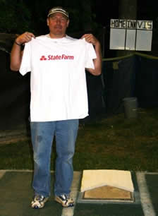 Once again - this was a landslide. The Fisher boys constant barrage of one liners to both their teammates and opponents - combined with Dave's break dancing on the mound - always makes these guys a hoot to play. Therein lies a subtle danger because they can beat you while you are laughing and almost make you feel good about it ! Even their team picture illustrates this as Dave had his eyes closed in all 3 pics I took. There is a surprise here - the only significant complaints we received this year centered on the use of solid balls for Little Leaguers - and PVB was the team with them (3 of 'em at times). Fortunately for all you complainers out there - Gabe & crew will be onto regular balls next year ! Knowing Dave, however, he may just go out and recruit a whole new batch of little guys just to aggravate you. Favorite Field Return to Top
