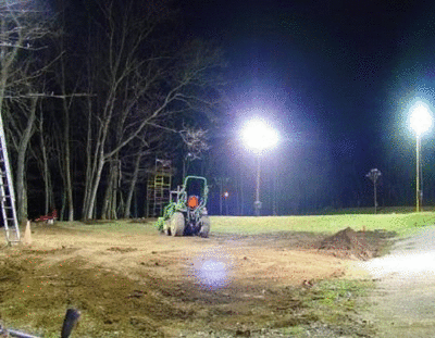All 3 basic 2011 complaints concerning this field have been addressed and fixed. 1) The abundance of HR robbing over-hanging tree limbs has been reduced by 80%, 2) the up hill grind to 1st base has been eliminated by nearly 200 tons of dirt making this almost level, 3) the veritable maze of saplings and thickets on the woods side preventing the retrieval of foul balls and HRs has been entirely removed. The newly graded and seeded infield has been mowed and the grass will be ready to go by opening day. Literally hundreds of small trees and a half dozen large trees have been removed from the outfield and in the woods to limit the impact of overhanging branches in play, particularly on home runs. HRs hit in any direction will now have a much greater chance of flying thru unscathed. The 3rd base foul line has been cleared of saplings to make retrieving foul balls easy and poison ivy free. The field is now illuminated by 8-400 watt metal halides and 2-1,000 metal halides, providing 420,000 lumens directly to the field with the over spill from TLC and J & M Yards assisting in the process. Currently lights have been mounted; 1) behind home plate to a locust tree that supports the tree house, 2) 2 lights are mounted to the locust tree directly to the rear of home plate, 3) the right field foul pole has 2 lights mounted in foul territory from the pole with remotely located ballasts at the bottom of the pole, 4) 2 lights are mounted on the rear of the pole located in left center field on J & M field. The power box has been mounted and energized on this pole also. The last 2 lights are mounted to a huge locust tree just behind 3rd base down the left field line. Wire strung between the power pole and the lights will complete the lighting project. The 14' tarp which formed the right field fence has been replaced by 2 6' tall sections of windscreen and a 6' tall windscreen now makes up the rest of the outfield fence. Carroll Field (front yard) Return to Top