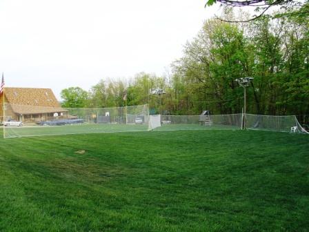An additional field has been added to the backyard. The current home plate is moved down the third base line towards the woods and the field rotated slightly to the 3rd base line. A 12' high fence has been installed in left field at 90'. The right field fence will remain at 85' and is 6'-7' tall. Center will be 105' in length.
