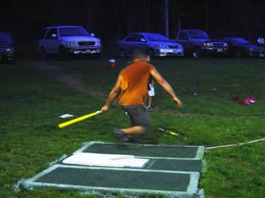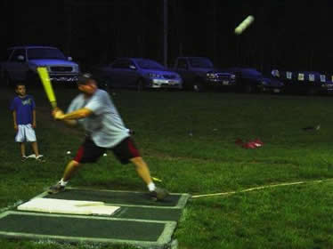 Gary of PVB looking to lose one to left Brad of the Redlegs watches a drive backdoor Father & Son Gabe & Dave Fisher looking to improve on their runner-up finish in the HR race Drew Nichols watches one of his 6 HRs Blake Rinehart lofts a high drive to left...back, leave the yard back, back, caught agains the fence !
